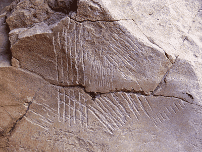 | Grabados: Delante del panel principal se encuentran dos figuras grabados en el suelo. |