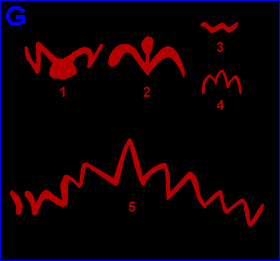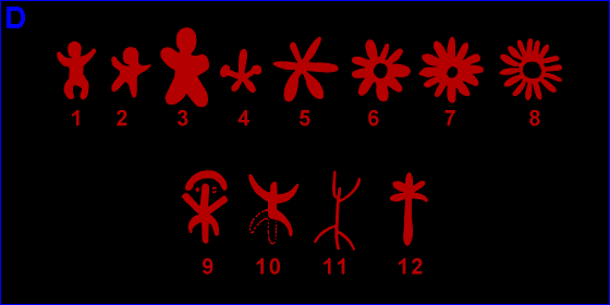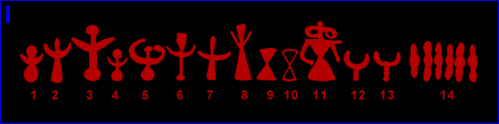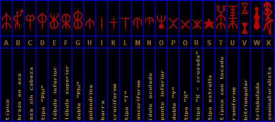 en fila india. Características Iconográficas Ante la gran cantidad de caracteres iconográficos, identificables por su morfología, Acosta y otros autores elaboraron sistemas de clasificación. A modo de orientación incluimos aquí una tabla tipológica para los elementos más difundidos en el Arte Sureño. Algunos de éstos, como por ejemplo las puntuaciones, son típicos también del Paleolítico Superior : |