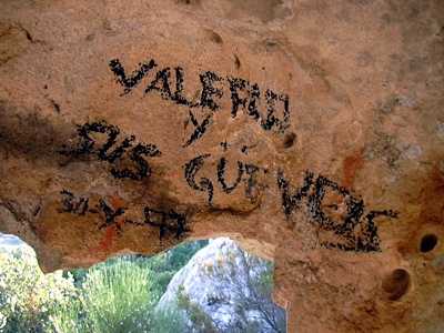 del Jilguero: (Jimena de la Frontera) Pintadas de excursionistas en el gran panel. |