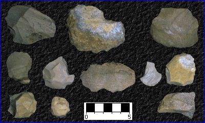 Se denomina Edad de Piedra al periodo prehistórico en el cual el instrumental empleado por el hombre estaba construido principalmente con piedra (sílex, cuarcita, otras variedades de cuarzo y rocas de gran dureza), pero también con madera, huesos y cornamentas de cérvidos. La edad de piedra, que precede a la Edad del Cobre, la Edad del Bronce y a la Edad del Hierro, fue clasificada en distintas fases que a su vez tienen subdivisiones según los tecnocomplejos. El Paleolítico (del griego paleo, 'antiguo', y lithos, 'piedra') se ha dividido en tres grandes épocas : Inferior, Medio y Superior. El arte rupestre más antiguo del Campo de Gibraltar fue realizado por cazadores-recolectores del Paleolítico Superior (Solutrense). Un magnífico ejemplo de este periodo es la Cueva del Moro (Tarifa). El Neolítico (de neo, 'nuevo') se caracteriza por la aparición de la piedra pulimentada. En esta fase el hombre empieza a domesticar animales y a cultivar plantas. Se hace sedentario y descubre un nuevo material: la cerámica. El uso de herramientas de piedra era común también durante el Calcolítico (Edad del Cobre) y la Edad del Bronce (ver ejemplo: Necrópolis de los Algarbes). La Edad del Hierro empieza con la aparición de este metal en la Península Ibérica alrededor de 700 a.C. y termina con el fin de la expansión de Roma. [ La Edad de Piedra finalizó en algunas zonas del mundo tan sólo hace unos pocos siglos cuando los colonizadores europeos acabaron con la forma de vida tradicional de aquellos pueblos.] Industria lítica : Núcleos, lascas, raspadores, buriles, muescas, puntas, denticulados, hojas prismáticas, etc.